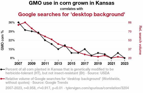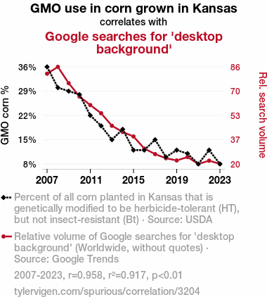 - The spurious research paper: Corny Connections: Genetically Modified Corn in Kansas and the Curious Case of Google Searches for 'Desktop Background'