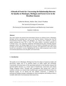 A Breath of Fresh Air: Uncovering the Relationship Between Air Quality in Muskegon, Michigan and Forest Cover in the Brazilian Amazon The Journal of Ecological Connections Jan 2024 Reminder: This paper is AI-generated. Not real! |