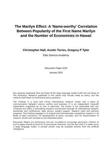 The Marilyn Effect: A 'Name-worthy' Correlation Between Popularity of the First Name Marilyn and the Number of Economists in Hawaii The Journal of Quirky Social Science Research Jan 2024 Reminder: This paper is AI-generated. Not real! |