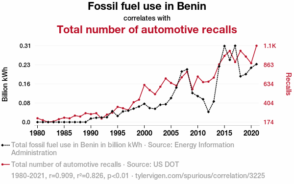 As we shift gears towards the finish line, it's clear that this correlation is not just a pit stop on the road to discovery; it's a full-throttle revelation that demands attention. Our study has put the pedal to the metal on assumptions and turbocharged the understanding of this unusual intersection, proving that the connection between fossil fuel use in Benin and automotive recalls is more than just a quirky coincidence – it's a statistical phenomenon with a sense of humor.