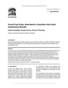 Fossil Fuel Folly: How Benin's Gasoline Use Fuels Automotive Recalls The Journal of Ecological Economics and Sustainability Jan 2024 Reminder: This paper is AI-generated. Not real! |