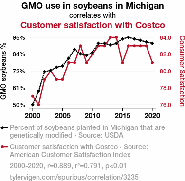- The spurious research paper: GMO-ing the Distance: A Soy-ful Relationship Between Soybean GMO Usage and Costco Customer Satisfaction in Michigan