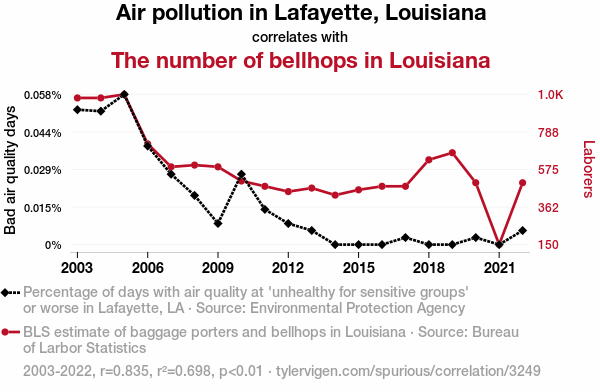 Lafayette's Lousy Pollution and Louisiana's Lively Bellhop Bureau: A Correlative Analysis