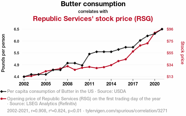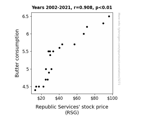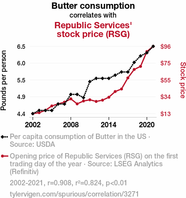- The spurious research paper: Putting Butter in Your Utter: A Study on the Clutter of Butter Consumption and the Stock Price Flutter of Republic Service's RSG