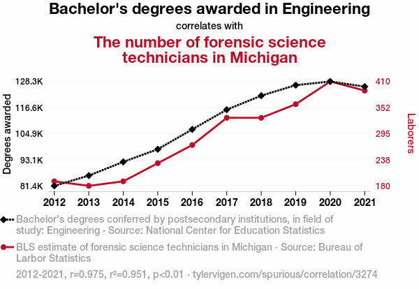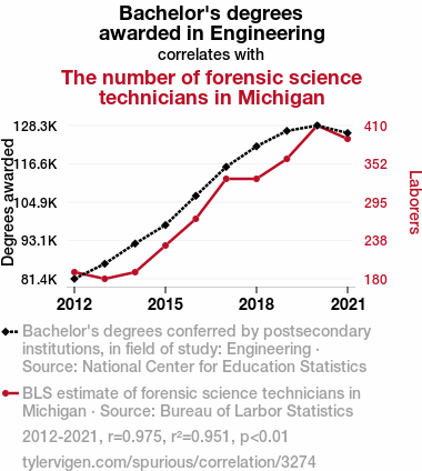 - The spurious research paper: Crunching Numbers: The Link Between Engineering Degrees and Forensic Technicians in Michigan