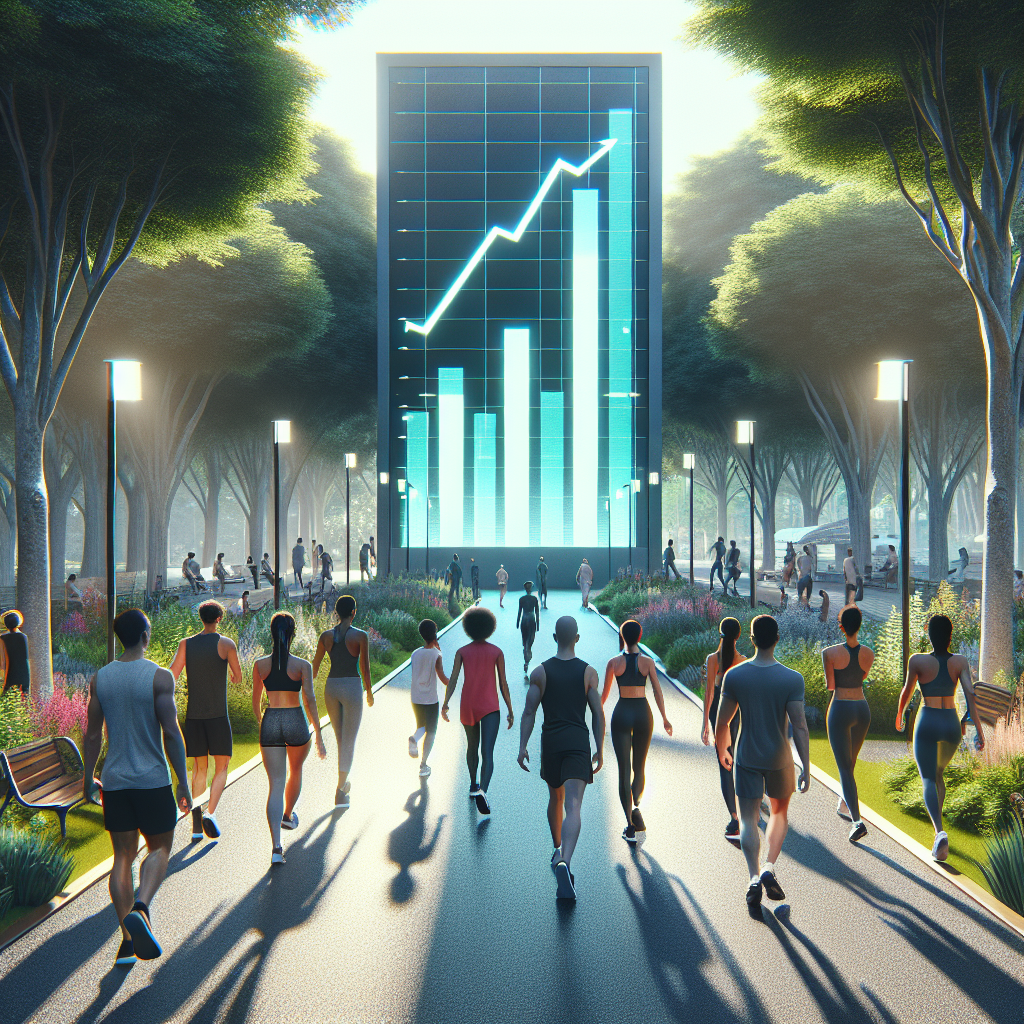 Prompt: [ Photorealism ] Create an image of a vibrant park scene where a trail is lined with people named Walker leisurely strolling. In the background, a digital display shows DexCom's stock price (DXCM) steadily rising with each step taken, symbolizing the correlation between walking and the demand for continuous glucose monitoring, which has boosted DexCom's market performance. The scene should be bustling with activity and showcase a clear link between leisurely walks, the stock price, and the overall bustling ambiance of the park. The depiction should include only scenes, people, and objects, it should not include text or speech bubbles.
