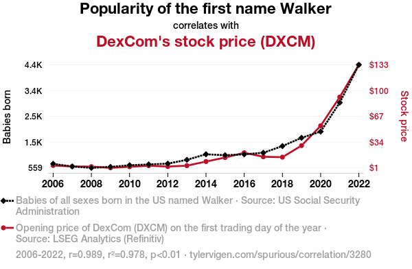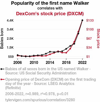- The spurious research paper: Striding through the Stock Market: The Walker Name Popularity and Its Impact on DexCom's Stock Price