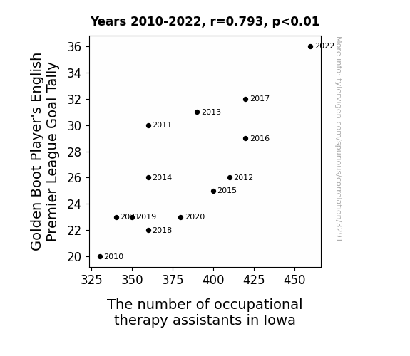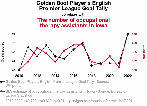 English Premier League, Golden Boot Player, occupational therapy assistants, Iowa, correlation study, Bureau of Labor Statistics, soccer prowess, occupational therapy demand, healthcare workforce trends