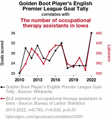 - The spurious research paper: Scoring Goals and Assisting Occupational Therapy: A Correlation Study in English Premier League and Iowa