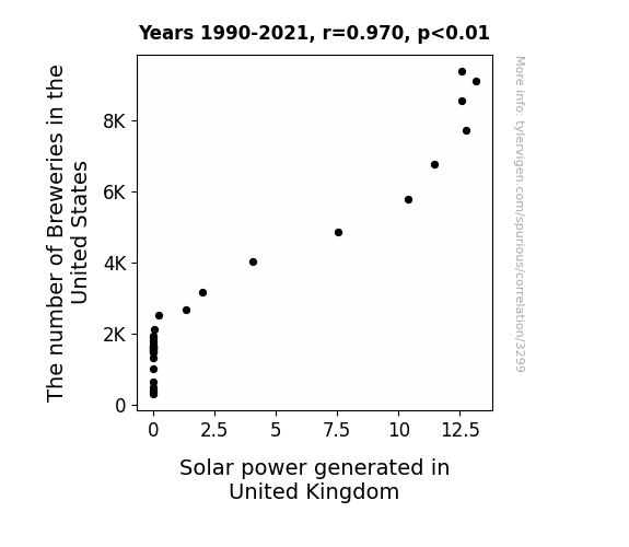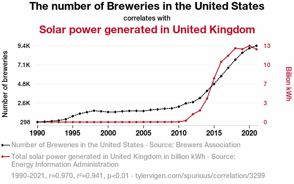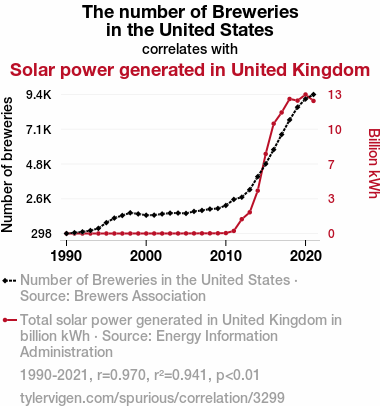 - The spurious research paper: Ales and Solar Sails: Examining the Quirky Relationship Between Breweries in the United States and Solar Power Generated in the United Kingdom