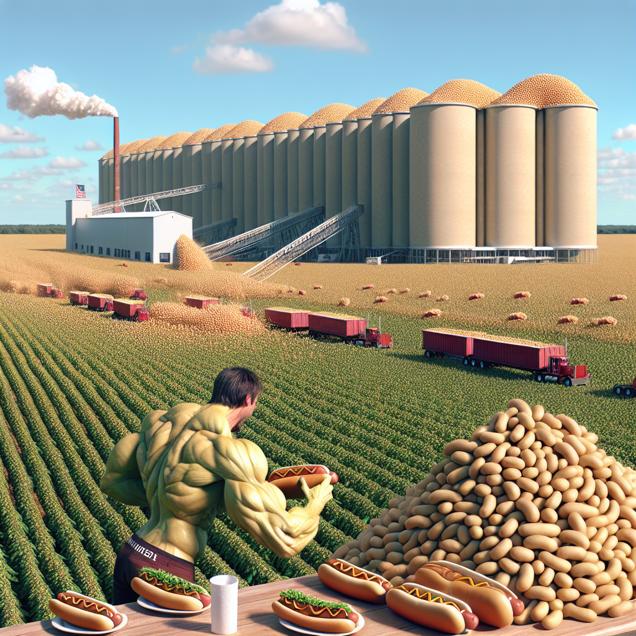 User prompt: Please make up a funny explanation for how an increase in GMO use in soybeans in Nebraska caused Hotdogs consumed by Nathan's Hot Dog Eating Competition Champion to increase. Make it feel plausible.