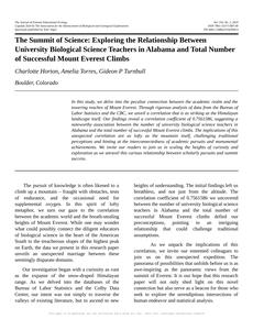 University, biological science, teachers, Alabama, Mount Everest, successful climbs, correlation, association, academic pursuits, monumental achievements, research, data analysis, summit success