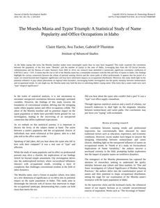 The Moesha Mania and Typist Triumph: A Statistical Study of Name Popularity and Office Occupations in Idaho Journal of Quirky Sociological Studies Jan 2024 Reminder: This paper is AI-generated. Not real! |