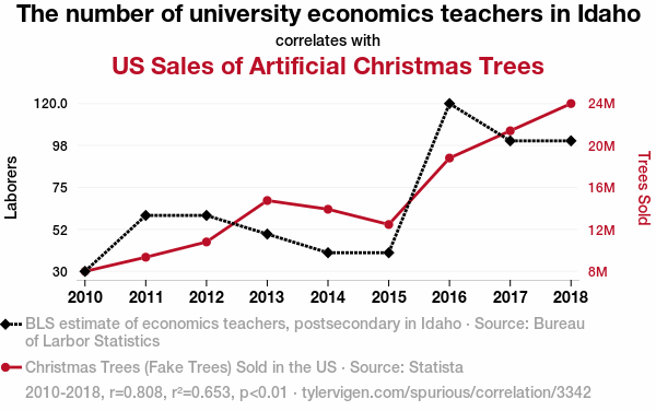 university economics teachers, artificial Christmas tree sales, US consumer behavior, Bureau of Labor Statistics, Statista, correlation coefficient, economics education, holiday season, market influence