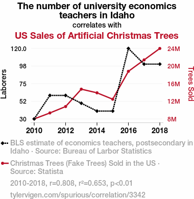 - The spurious research paper: Branching Out: The Influentree of University Economics Teachers on Artificial Christmas Tree Sales in the US