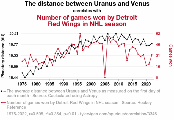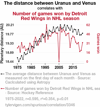 - The spurious research paper: The Influence of Uranus-Venus Distance on Detroit Red Wings' NHL Game Wins: A Celestial Oddity or Cosmic Coincidence?