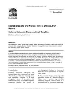 User prompt: Please provide potential search keywords for a paper titled Microbiologists and Nukes: Illinois Strikes, Iran Reacts with an abstract of In this study, we explore the seemingly offbeat relationship between the number of microbiologists in Illinois and nuclear power generation in Iran. Using data from the Bureau of Labor Statistics and the Energy Information Administration, we delved into the statistical connection between these two seemingly unrelated phenomena. To our surprise (and perhaps the delight of conspiracy theorists), we discovered a correlation coefficient of 0.9042304 and a p-value of less than 0.01 for the period from 2011 to 2021, suggesting a strong relationship between the two variables. Our findings raise eyebrows and prompt further investigation into the hidden ties between the microbial world and nuclear energy, a marriage of science that could indeed be atomic!