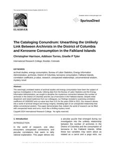 The Cataloging Conundrum: Unearthing the Unlikely Link Between Archivists in the District of Columbia and Kerosene Consumption in the Falkland Islands The Journal of Eccentric Archival Studies Jan 2024 |