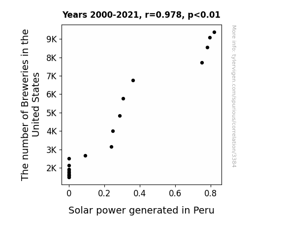 - The spurious research paper: Brewing Up a Solar Storm: The Surprising Relationship Between U.S. Breweries and Solar Power Generation in Peru