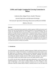 GMOs and Google: Gauging the Growing Connection in Illinois Journal of Agriculture and Information Technology Jan 2024 Reminder: This paper is AI-generated. Not real! |
