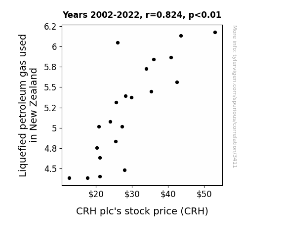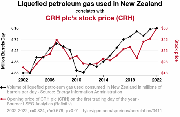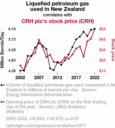 - The spurious research paper: The Propane Paradox: Exploring the Correlation Between Liquefied Petroleum Gas in New Zealand and CRH plc's Stock Price