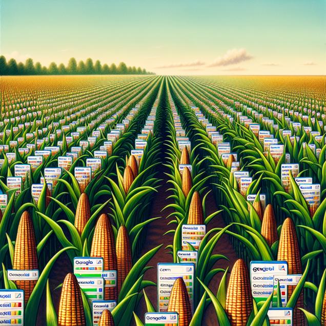 ChatGPT: In a vast Wisconsin cornfield, the genetically modified cornstalks stand tall, their bright green leaves rustling in the breeze. Among the rows of corn, colorful search bars labeled "i cant even" float above the crops, representing the increasing number of Google searches. The frustrated corn seems to be expressing its dissatisfaction with the genetic modifications by influencing these searches.
