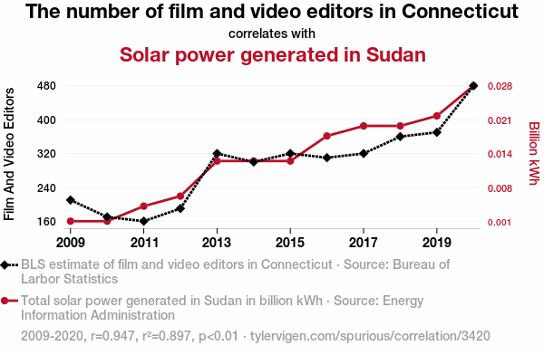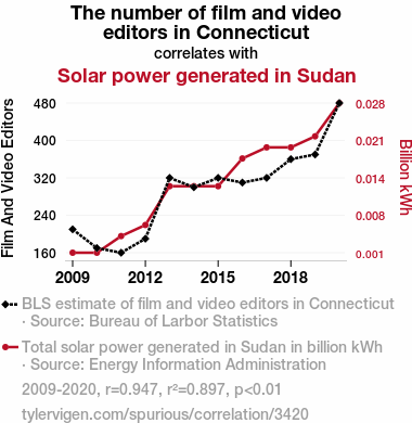 film editors, Connecticut, solar power, Sudan, correlation, energy statistics, Bureau of Labor Statistics, Energy Information Administration, correlation coefficient, p-value, "cinemati-solar" relationship