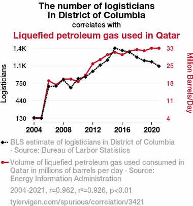 Logisticians, District of Columbia, liquefied petroleum gas, LPG, Qatar, correlation, Bureau of Labor Statistics, Energy Information Administration, statistical analysis, relationship, causation, investigation, logistics, energy, intersections