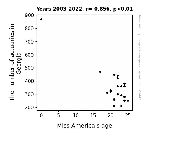 - The spurious research paper: The Actuary Equation: A Statistical Analysis of Actuary Numbers in Georgia and Miss America's Age