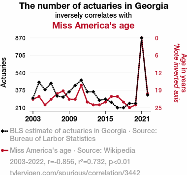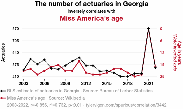 - The spurious research paper: The Actuary Equation: A Statistical Analysis of Actuary Numbers in Georgia and Miss America's Age