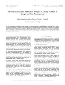 Please make up a literature review section of an academic research paper presenting the findings of the connection between The number of actuaries in Georgia and Miss America's age. Make lots of jokes, goofy observations, and puns.