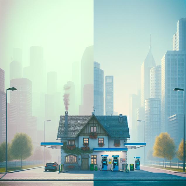 ChatGPT: An image that looks like it is a scene from a Pixar movie: In Phoenix, the skyline is hazy, with smog hanging in the air. Nearby, a gas station sits quiet, with fewer cars stopping to fill up. Meanwhile, in Austria, gas pumps stand idle, as the lack of demand has caused a decrease in gasoline pumped. The link between the two cities is evident - the decrease in air quality in Phoenix has indeed led to a decrease in gasoline pumped in Austria. Enhanced visual prompt: Generate an image reminiscent of a scene from a Pixar movie, contrasting the hazy skyline of Phoenix with a quiet gas station and the idle gas pumps in Austria. Depict the smog hanging in the air in Phoenix and the noticeable decrease in demand for gasoline in Austria. The overall image should relay the connection between the decrease in air quality and the subsequent impact on gasoline consumption in a simple and visually striking manner.