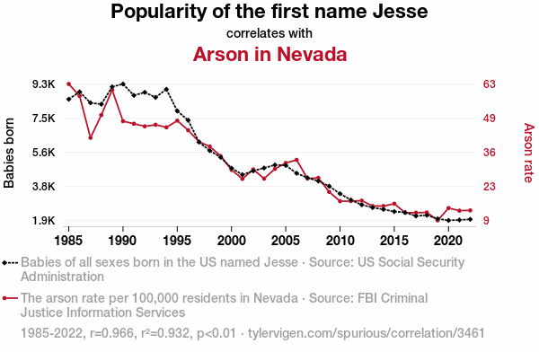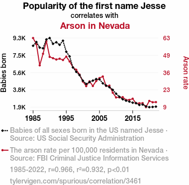name popularity, arson, Nevada, Jesse, correlation, FBI, US Social Security Administration, criminal behavior, nominative determinism