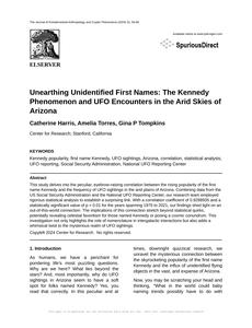 Unearthing Unidentified First Names: The Kennedy Phenomenon and UFO Encounters in the Arid Skies of Arizona The Journal of Extraterrestrial Anthropology and Cryptic Phenomena Jan 2024 Reminder: This paper is AI-generated. Not real! |