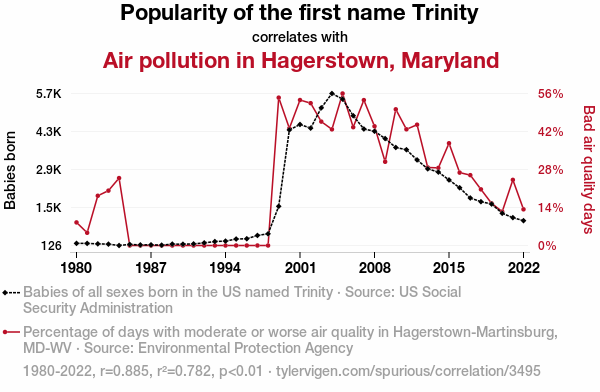 - The spurious research paper: The Trinity Effect: A Heavenly Connection Between Name Popularity and Air Pollution in Hagerstown, Maryland