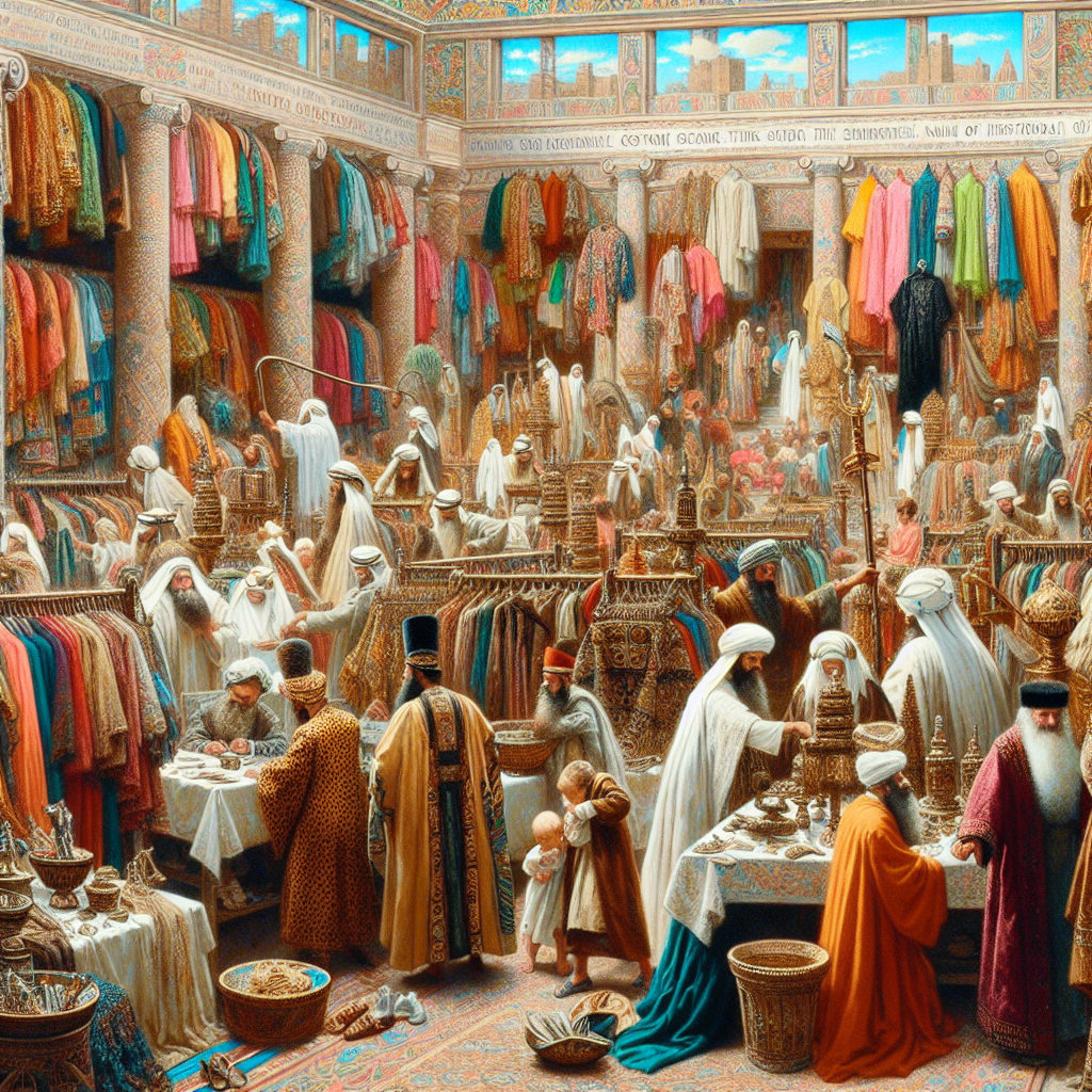 ChatGPT: Generate an image of a vibrant costume shop in Washington, bustling with activity. Within the shop, rows of tiny flowing robes, intricate staffs, and epic beards are being meticulously crafted by a team of energetic costume attendants. Among the customers, parents proudly peruse the racks for the perfect Moses outfit for their beloved baby boy, as the popularity of the name Moses has caused a surge in demand for biblical costumes. The scene is filled with lively energy and creativity as the attendants cater to the growing demand for these elaborate and historical costumes.