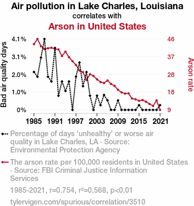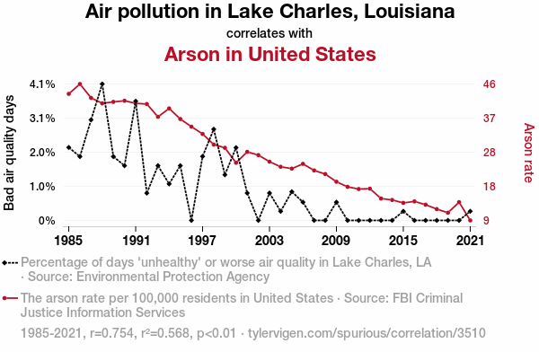 - The spurious research paper: Soot Happens: Investigating the Link Between Air Pollution in Lake Charles, Louisiana and Arson in the United States