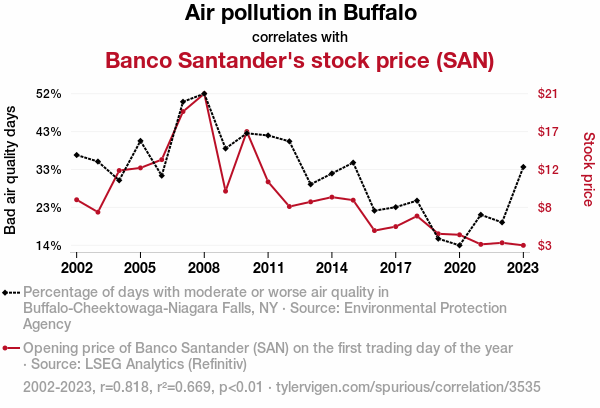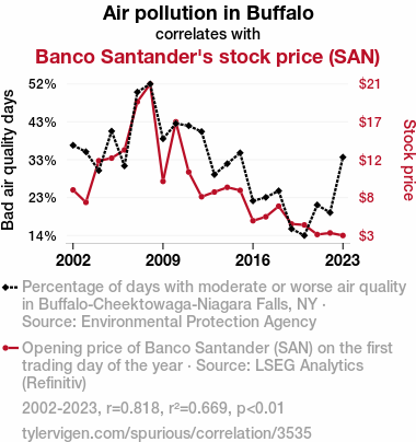 - The spurious research paper: Air It Out: Analyzing the Relationship Between Air Pollution in Buffalo and Banco Santander's Stock Price