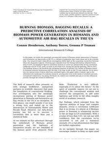 Burning Biomass, Bagging Recalls: A Predictive Correlation Analysis of Biomass Power Generation in Romania and Automotive Air Bag Recalls in the US The International Journal of Ecological Engineering and Automotive Technology Jan 2024 Reminder: This paper is AI-generated. Not real! |