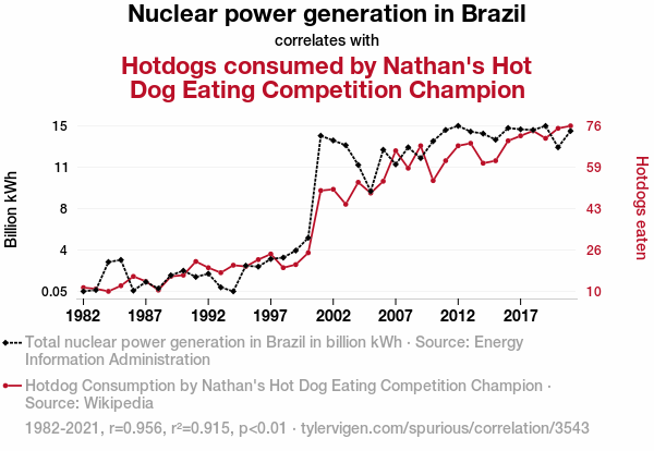 nuclear power generation, Brazil, Nathan's hot dog eating competition, correlation, nuclear energy Brazil, Nathan's hot dog champion, hot dog consumption, statistical analysis, energy information administration, competitive eating events, unlikely correlations, nuclear power influence
