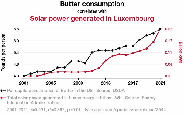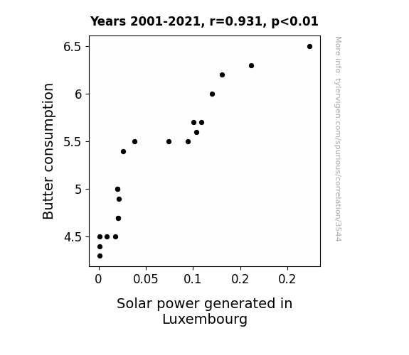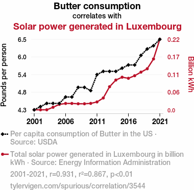 - The spurious research paper: Spreading Sunshine: The Buttery Connection Between Butter Consumption and Solar Power Generation in Luxembourg