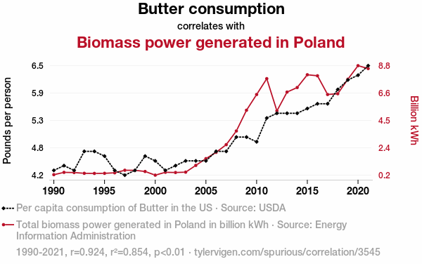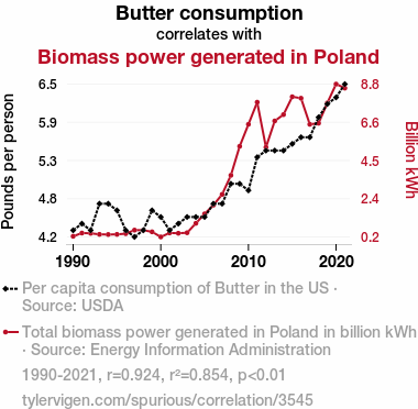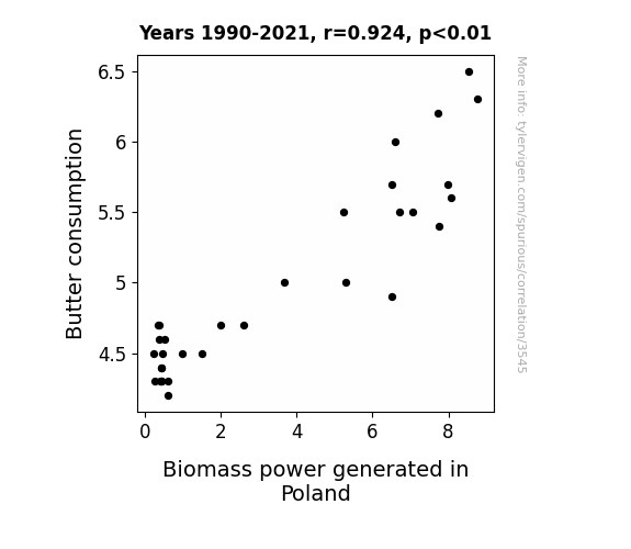 - The spurious research paper: Spreading the Joy: Uncovering the Butter-Biomass Connection in Poland's Power Generation