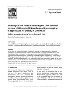 Dusting Off the Facts: Examining the Link Between Annual US Household Spending on Housekeeping Supplies and Air Quality in Cincinnati Journal of Domestic Hygiene and Environmental Health Jan 2024 |