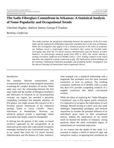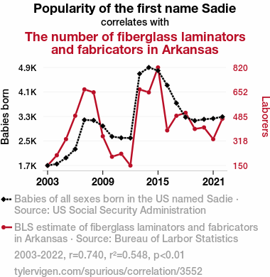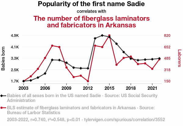 - The spurious research paper: The Sadie-Fiberglass Conundrum in Arkansas: A Statistical Analysis of Name Popularity and Occupational Trends