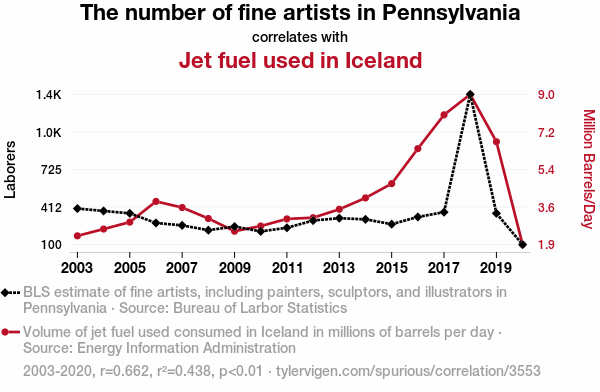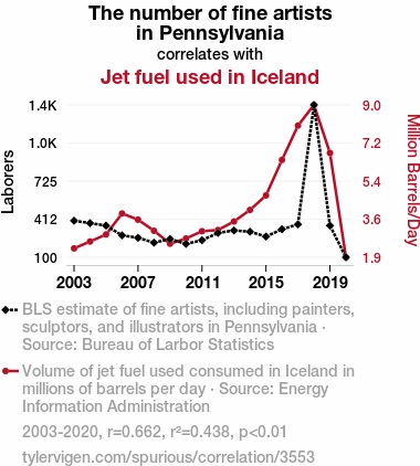 - The spurious research paper: Fine Artists in Pennsylvania and Jet Fuel in Iceland: An Unlikely Connection