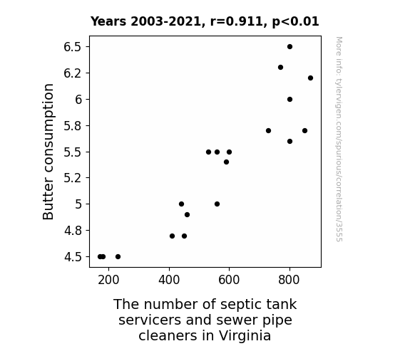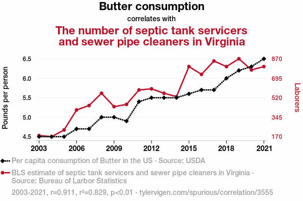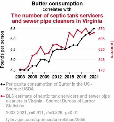 - The spurious research paper: Spreading Insights: The Butter-Sewer Connection in Virginia