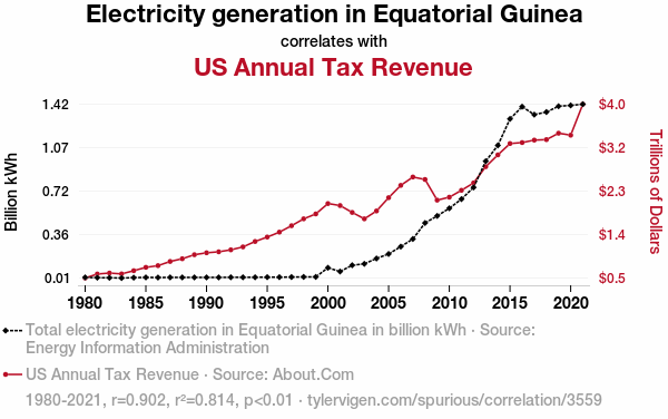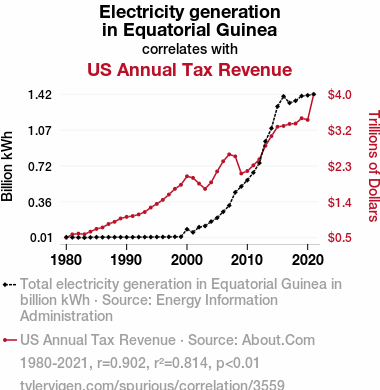 - The spurious research paper: Evaluating the Electrifying Effects: Equatorial Guinea's Electricity Generation and US Annual Tax Revenue