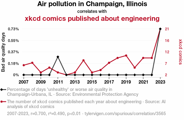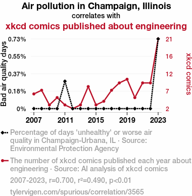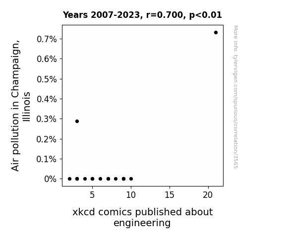 - The spurious research paper: Clearing the Air: An Empirical Study of Air Pollution in Champaign, Illinois and its Unlikely Relation to xkcd Comics on Engineering