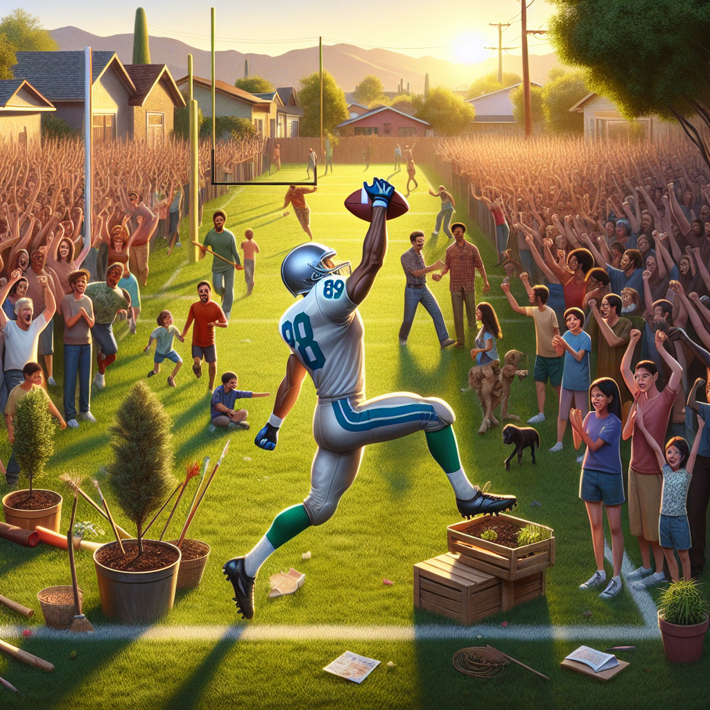 User prompt: Please respond with an image generation prompt that would be likely to create an interesting visual using DALLE-3, using the following style: [ A photo-realistic image ] and depicting this scene: In a vibrant Arizona community, Cristiano Ronaldo scores a goal, causing cheers and celebrations. In the background, more and more people are seen joining hands to plant trees and clean up the local environment, inspired by Ronaldo's achievement, and mirroring the increasing number of conservation scientists in Arizona. Keep the visual depiction simple. Do not include any words or speech bubbles.