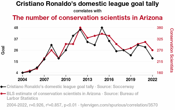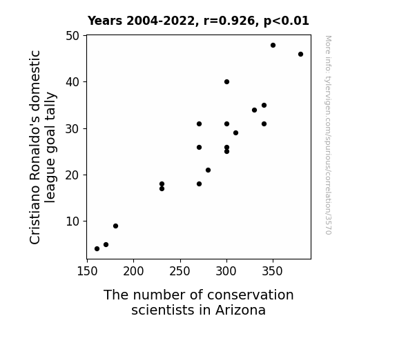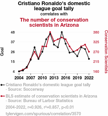 - The spurious research paper: Cristiano Ronaldo's Goal-Den Correlation: A Kicking Connection Between Football Excellence and Conservation Scientists' Abundance in Arizona